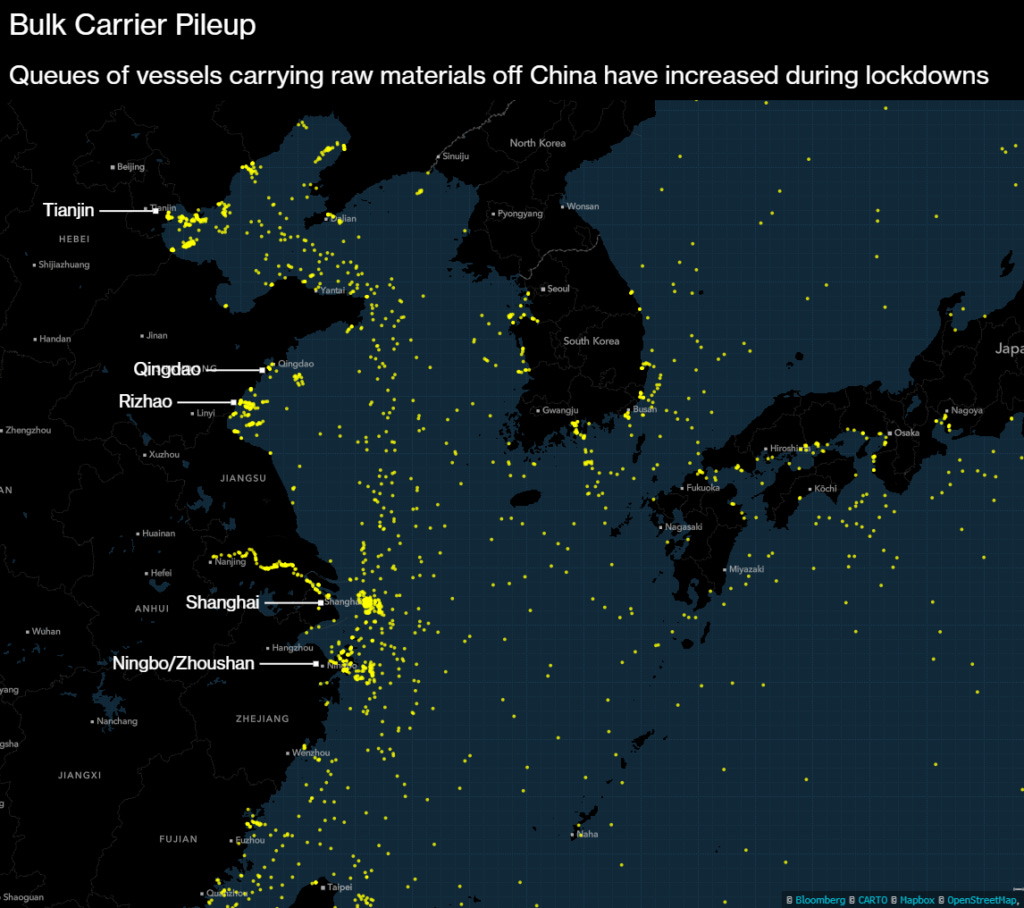 Shanghai port is more congested than my nose in winter right now, with 477 bulk cargo ships waiting to unload. Inevitably, these delays will end up increasing inflationary pressures: